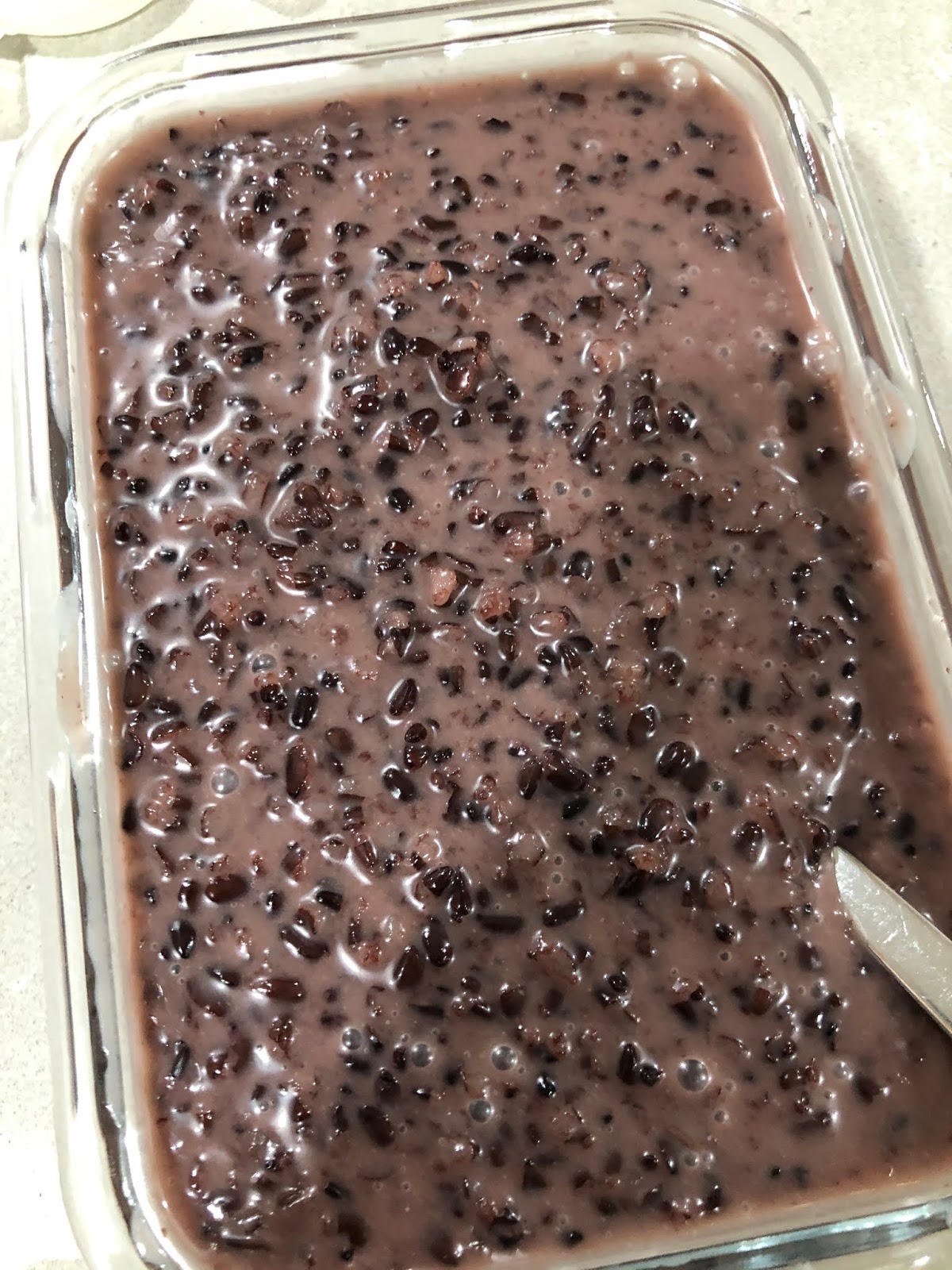 The black glutinous rice is cooked until soft and mixed with any form of sugar and coconut milk. It is so simple and tasty.